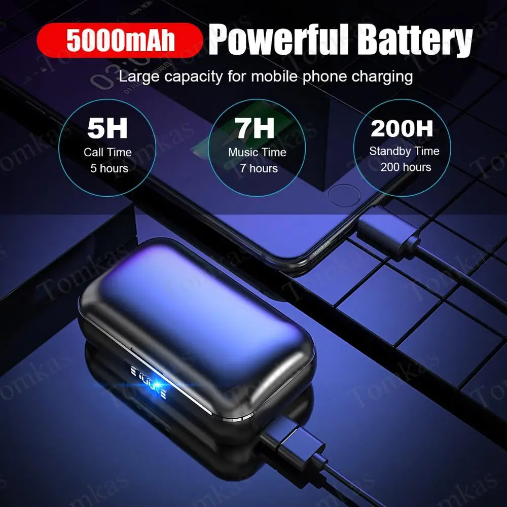 5000mAh TWS Bluetooth Wireless Earbuds Bluetooth Earphone Stereo Waterproof Headsets With Mic LED D