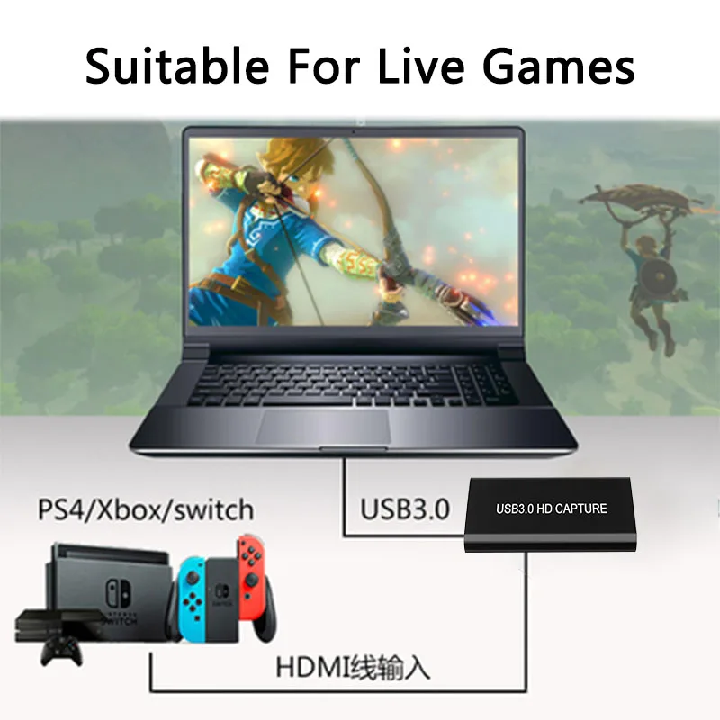 USB3.0 Capture Card HD Video Grabber Device HDMI to USB 3.0/USB C Box 1080p 60Hz Game Live Stream f